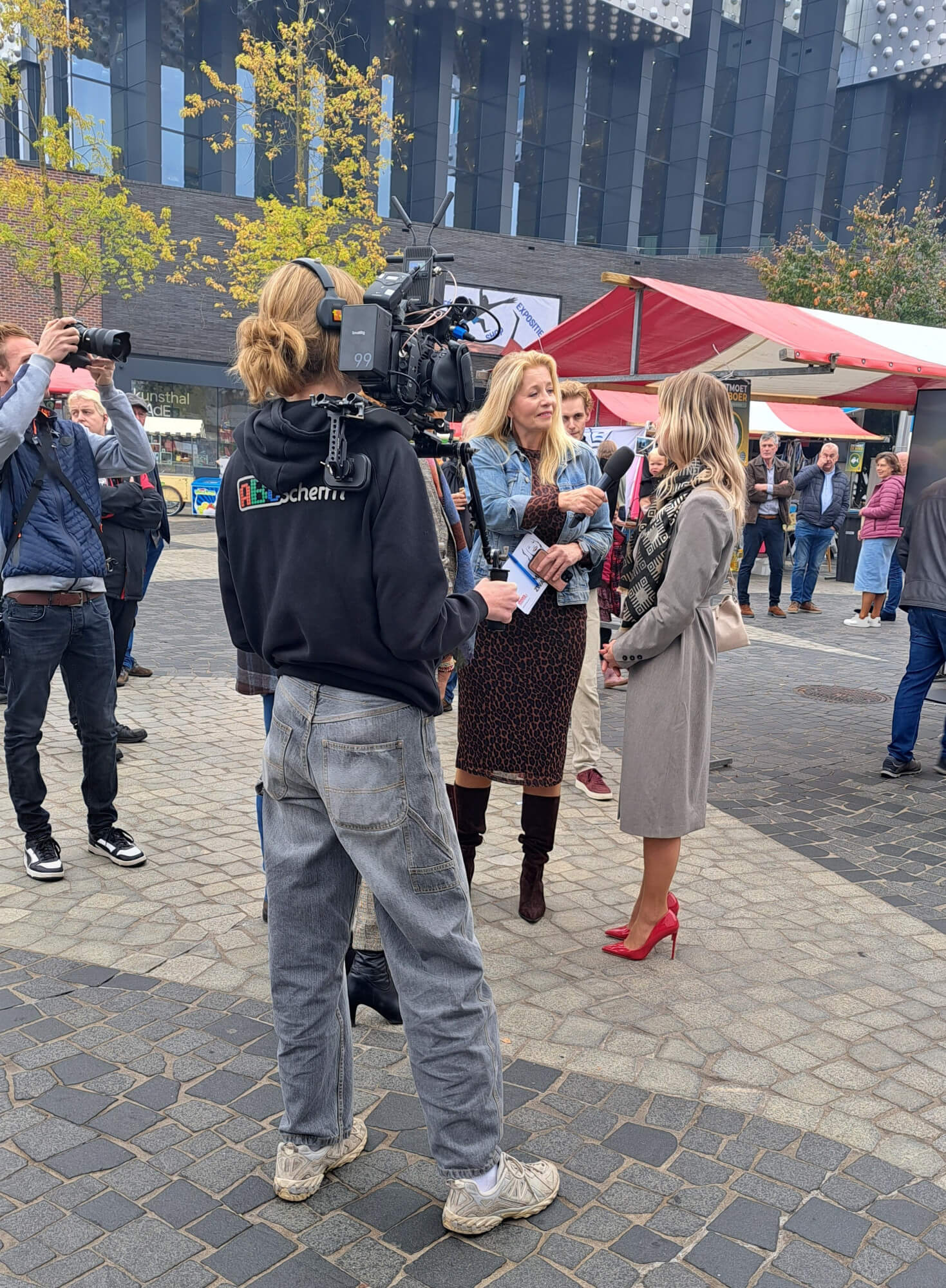 Om het publiek optimaal te betrekken, liep een cameravrouw met mobiele loopcamera tussen de bezoekers en sprekers. Deze beelden werden live uitgezonden op zowel de stream als het LED scherm.